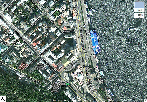 Для того, чтобы со стороны Подола нормально проехать по объездному маршруту – можно надеяться, что на ул. Андреевской запретят парковку, на ул. Братской будет организовано двустороннее движение, а трамвайные пути уберут совсем. Или следует выезжать на Набережную значительно раньше — до Контрактовой площади.