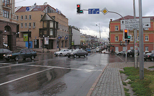 Следует отметить, что никаких предупреждающих, информирующих и т.п. знаков о смене схемы движения на всем протяжении ул. Сагайдачного найти не удалось. О том, что, двигаясь с Подола, нельзя поворачивать на Боричев спуск — водитель узнает только подъехав к Почтовой площади.